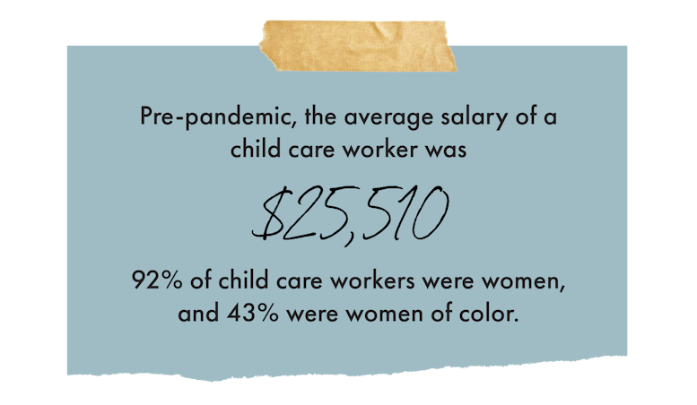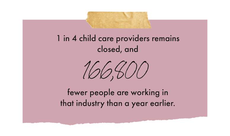 At this point, though, “it would take a lot [of investment] to get back even to what we had before the pandemic,” said Shana Bartley, the director of community partnerships at the National Women’s Law Center. If we don’t publicly invest in the child care industry and the women, largely Black and Latinx, who lost jobs during the pandemic, she said, “economic growth will be stunted for a long time, the cost of child care will be higher, and there will be communities that virtually don’t have any.” Or as Poo put it, “Every inequity would be exacerbated.”