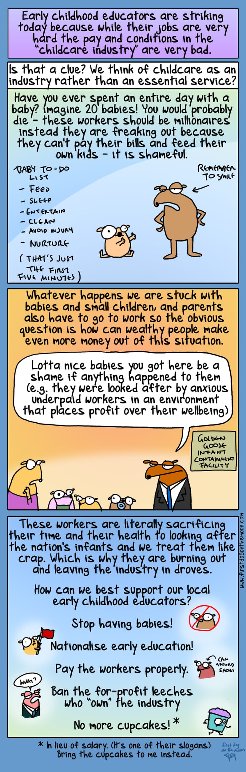 Early childhood educators should be millionaires! Instead they are freaking out because they can’t pay their bills or feed their own kids [1]
