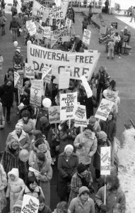 When universal child care began to be identified as a key feminist objective in the 1960s and 1970s, it became a demand in International Women’s Day marches and other feminist political actions across many countries.